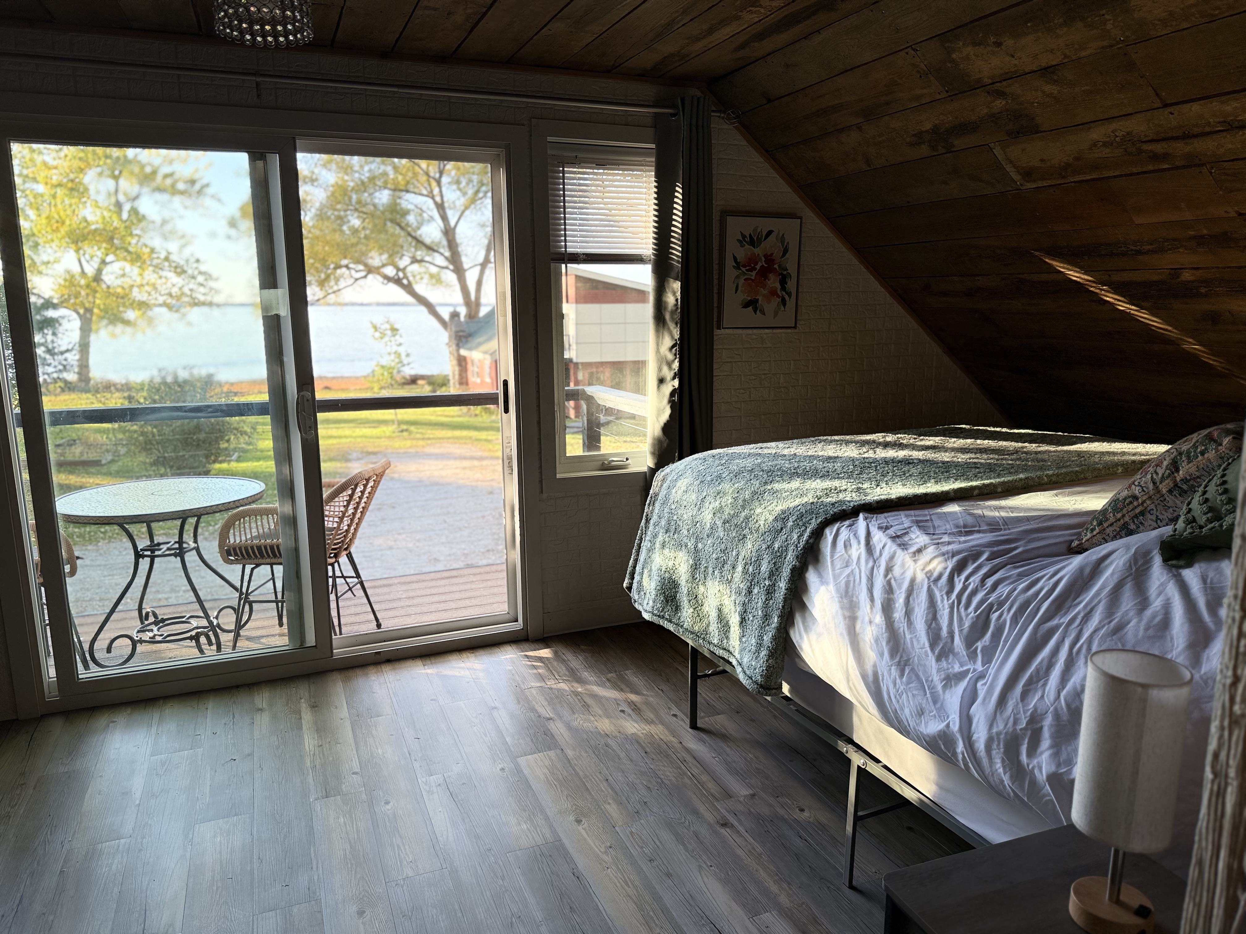 Lakefront views Direct private beach where you can enjoy kayaking, canoeing, paddleboarding, fishing, breathtaking sunsets, bonfires, and shooting stars. Private balcony Enjoy your morning coffee or a sunset dinner on your private deck overlooking the tranquil waters.